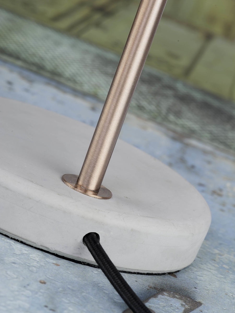 Illuminate your space with elegance and character! The "Denver" table lamp combines a minimalist design with striking contrasts, creating a sophisticated and contemporary look. Its slim copper arm stands out against the sturdy concrete base, providing a balance between delicacy and solidity. The lampshade adds a touch of robustness, making this lamp a versatile piece, perfect for industrial or modern interiors. Whether for a workspace or a cozy corner, this lamp offers captivating lighting with plenty of style.