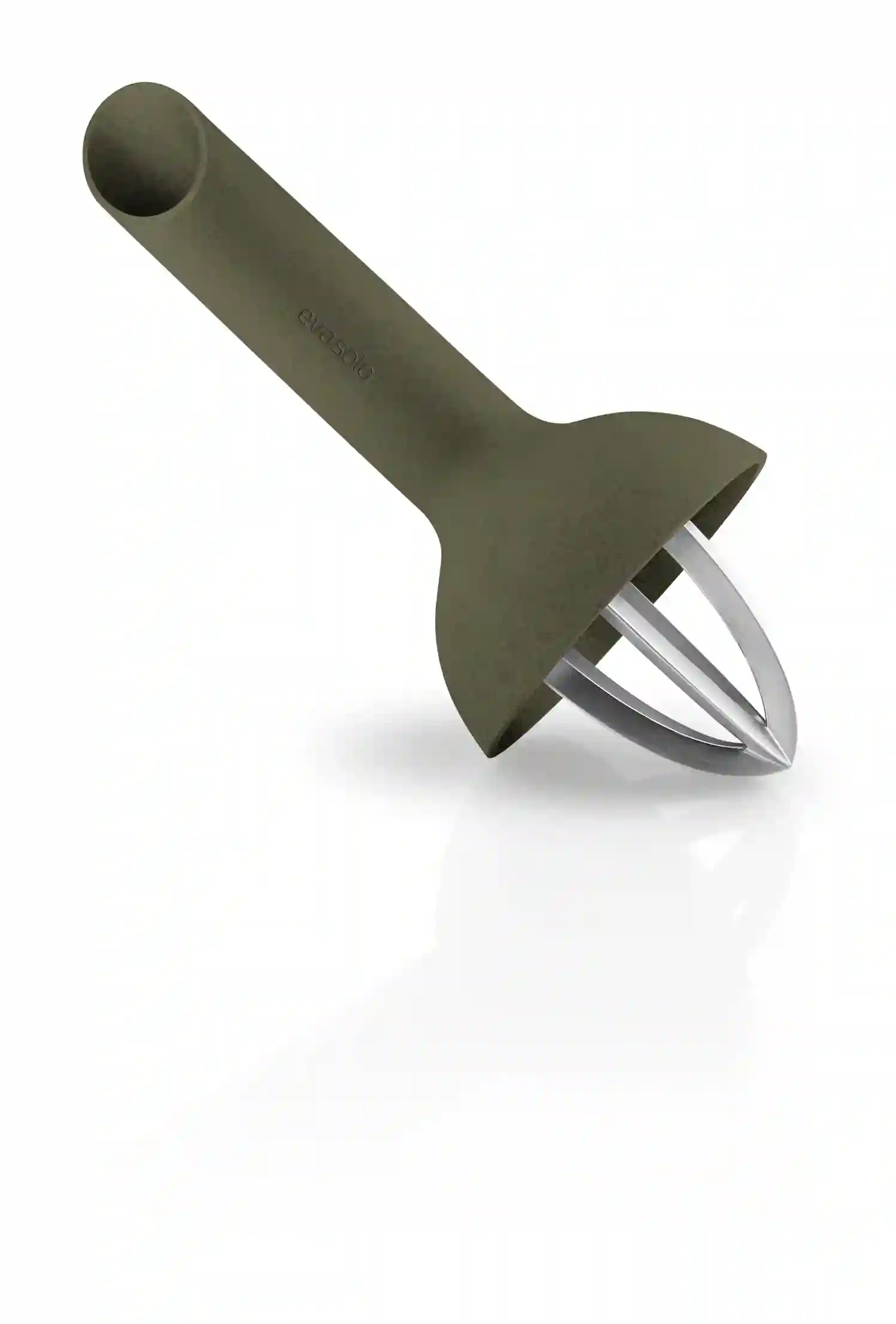 The "GREEN TOOL" citrus juicer is simple and practical. Just gently turn the fruit against the juicer and let the juice, free of pits, flow through the press handle, which functions as a funnel, directly into a glass or pitcher.
