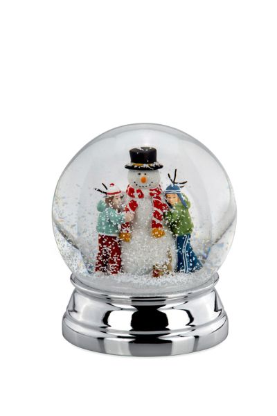 Make your winter merrier with this snow globe. It features a snowman surrounded by two happy children, enjoying their day in the snow. Shake it and watch the snowflakes fall on the little children, transporting you directly into the scene. Perfect for evoking festive feelings, friendship, and joy during this cold and festive season.
