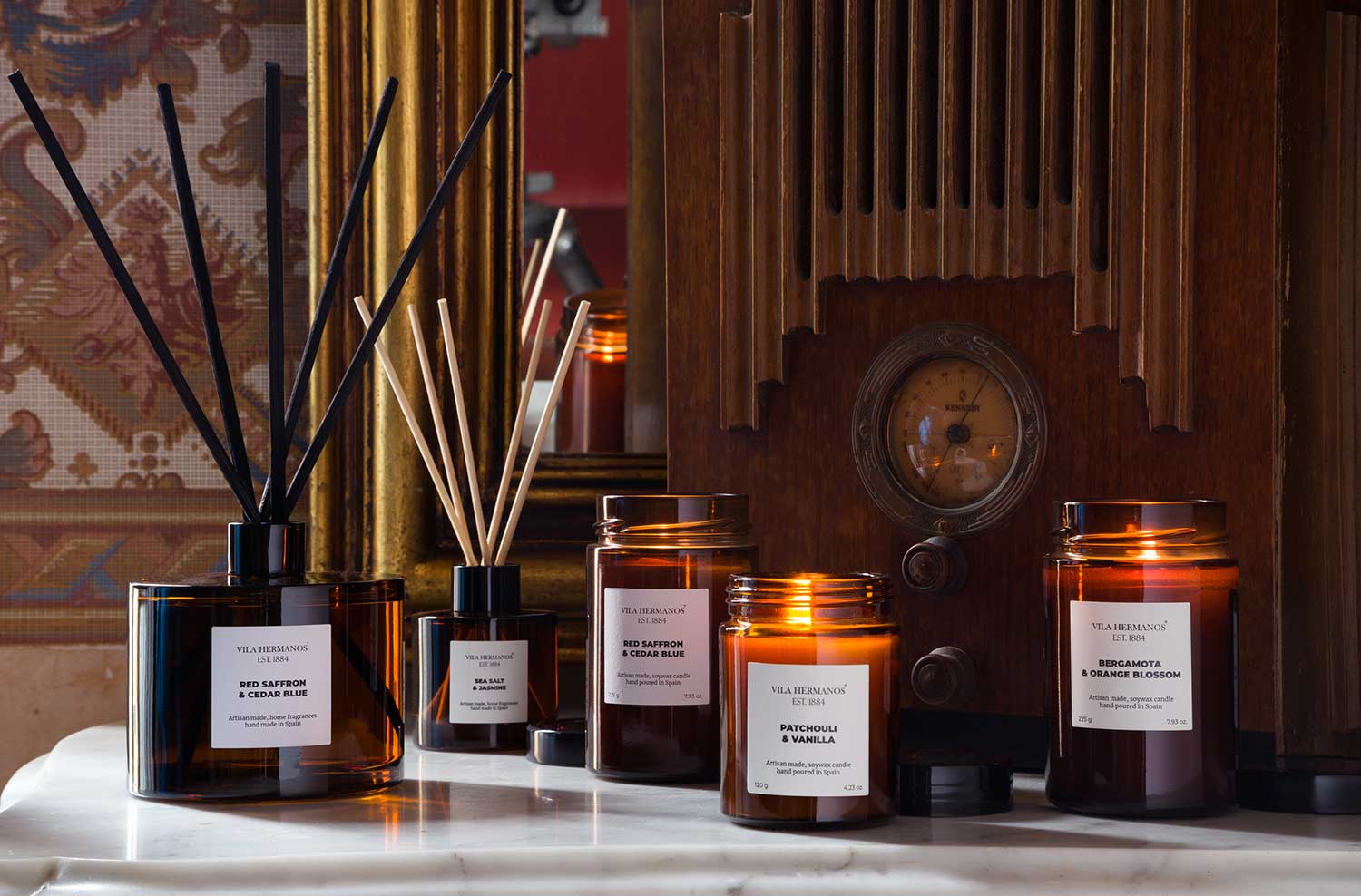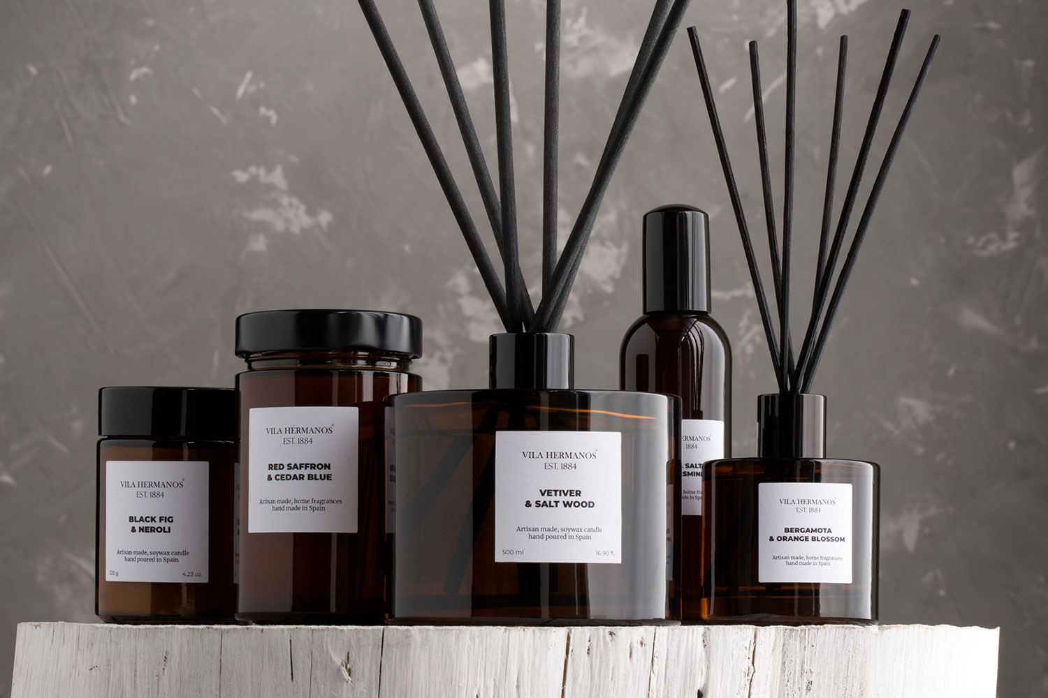 A collection of diffusers and aromatic candles with a fresh and modern design for the home. The diffusers, with elegant lines, are also perfect as decorative pieces. They are composed of natural fragrances of high purity, originating from the most prestigious region in the world, Grasse, in the French Provence. These feature high-absorption rattan sticks in black.