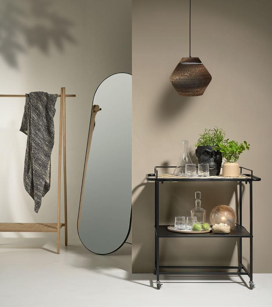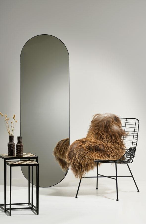Black mirror with multiple possibilities. A removable base is included so that the mirror can stand freely on the floor. On the back you will find 4 hinges so that the mirror can hang both horizontally and vertically on the wall.