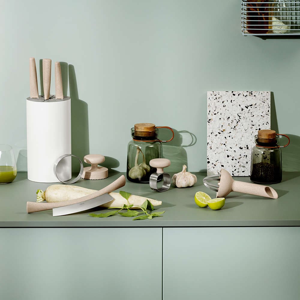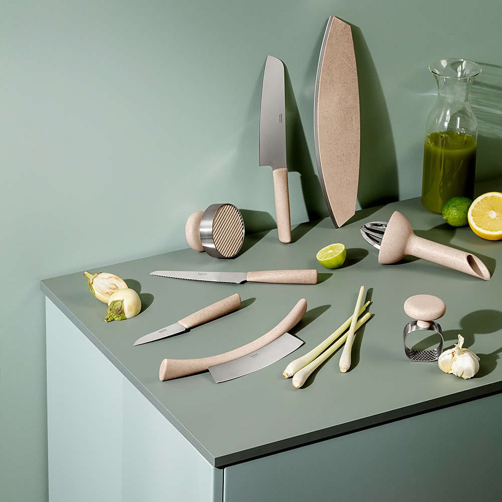 Menos plástico, más sabor en la cocina. La serie Green tools es una serie de utensilios de cocina funcionales y sostenibles diseñados para resaltar los sabores de las verduras que sirve. Las herramientas Green son, pues, un homenaje a los nuevos hábitos verdes en la cocina, así como a los métodos de producción nuevos y sostenibles.