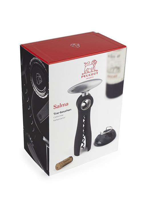 El sacacorchos Salma de Peugeot Saveurs abre todas las botellas con un simple movimiento gracias al mecanismo de sacacorchos sin fin: basta con girar en el mismo sentido para extraer el corcho.