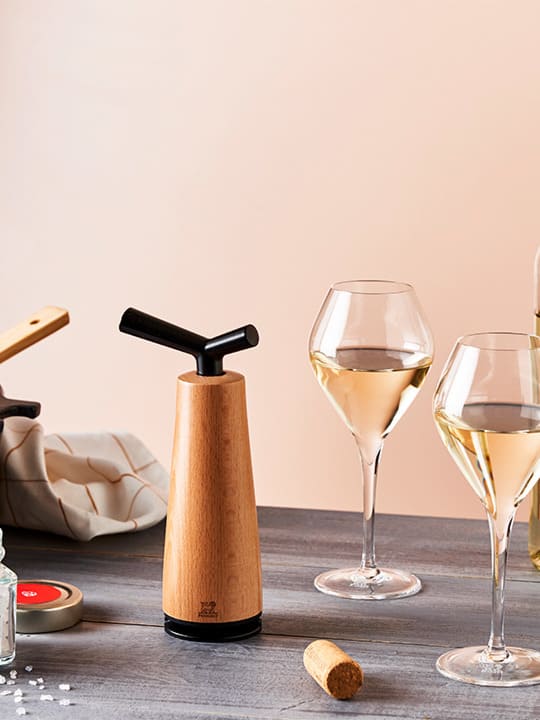El sacacorchos Vigne de Peugeot conjuga a la perfección autenticidad e innovación. Este sacacorchos de tornillo sin fin de madera de haya ofrece un sistema de expulsión del corcho patentado.