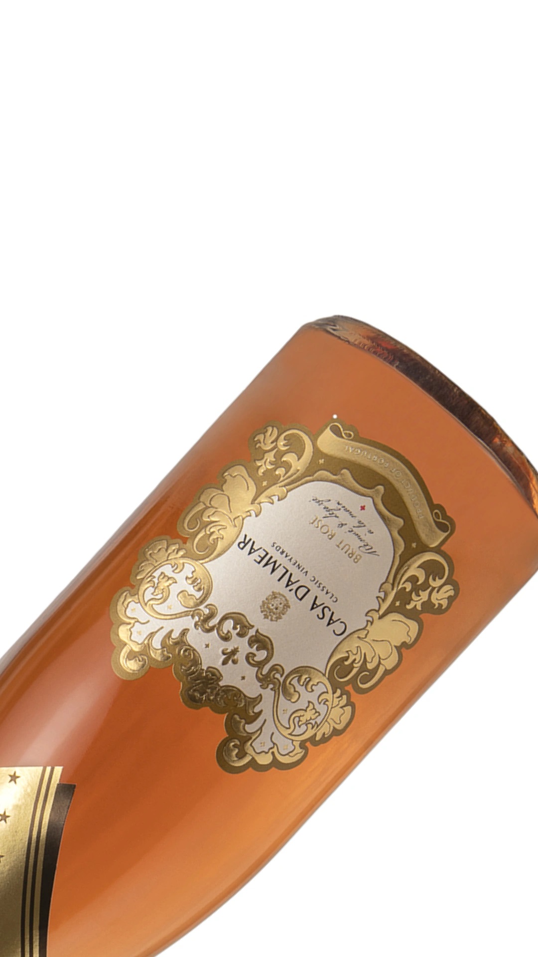 Casa D'Almear Bruto Rosé é um espumante de tom rosa coral e estilo muito sofisticado.
