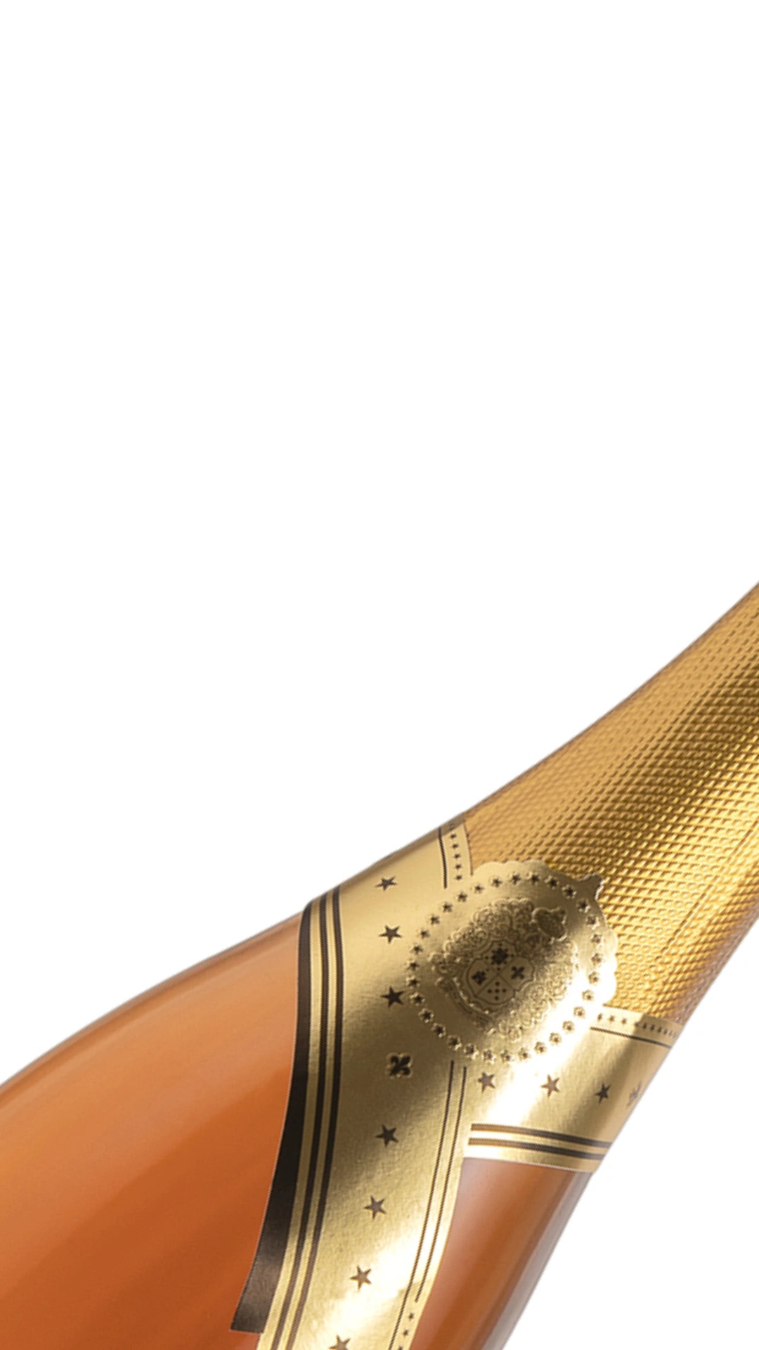 Tom diamante rosa claro. Reflexo coral e dourado. Espumante de cor diamante rosa. Aroma frutado e intenso a frutos vermelhos, envolvidos por notas florais doces.