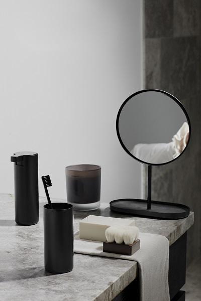 O espelho de cosméticos "MODO" é elegante, bonito e adequa-se a todo o tipo de casa de banho. O titânio não só oferece uma sensação agradável, mas também é resistente à corrosão e a arranhões. A parte inferior, de borracha, garante um suporte firme.