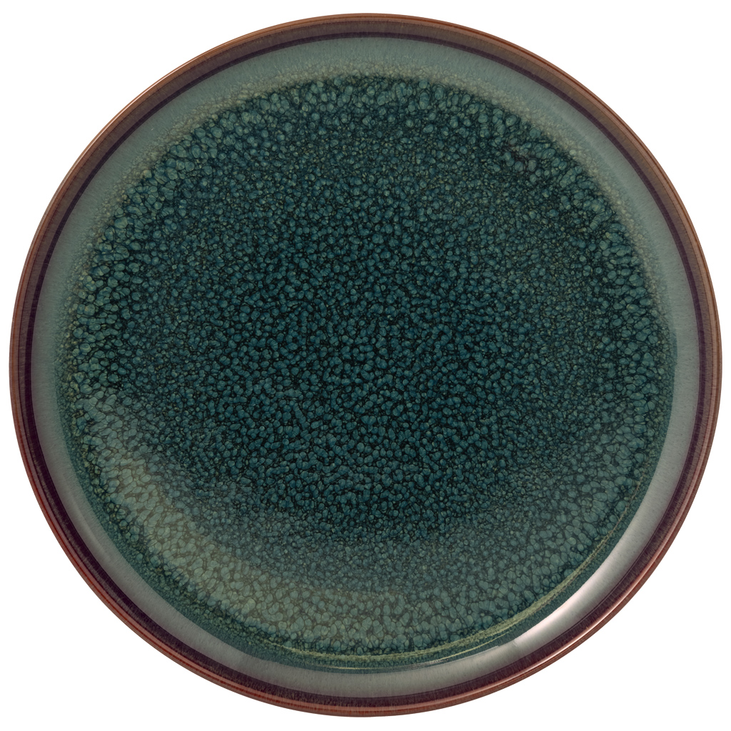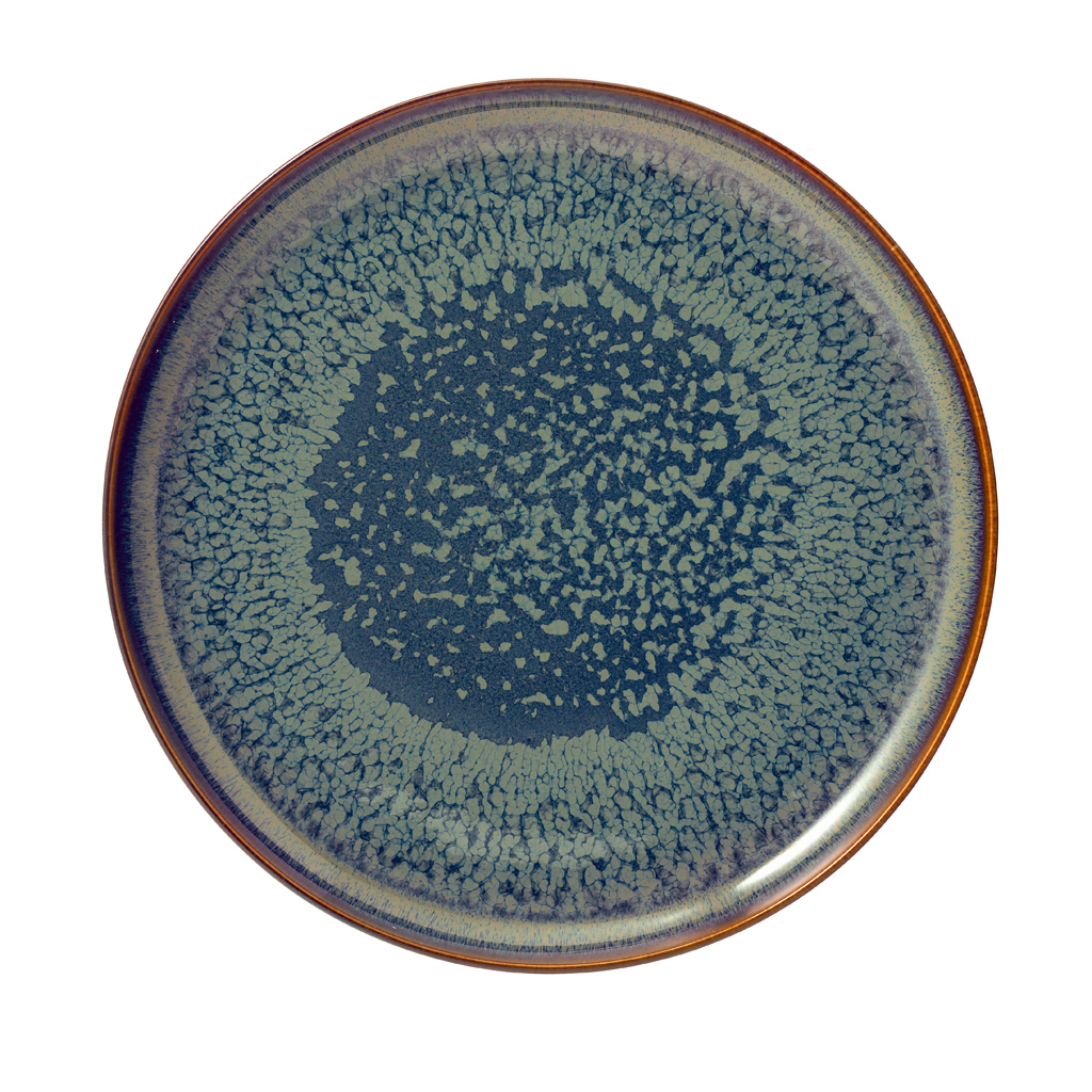 Fabricado em porcelana premium de alta qualidade, mantém o seu brilho impecável mesmo após uso frequente, garantindo durabilidade e sofisticação. O esmalte reativo confere um caráter único a cada peça, com variações de cor que tornam cada prato verdadeiramente exclusivo.